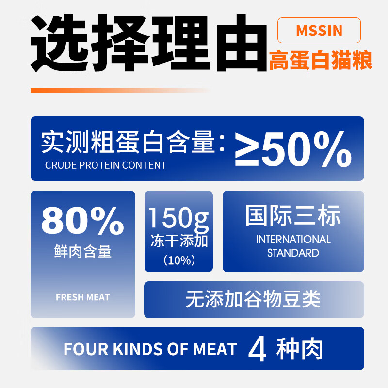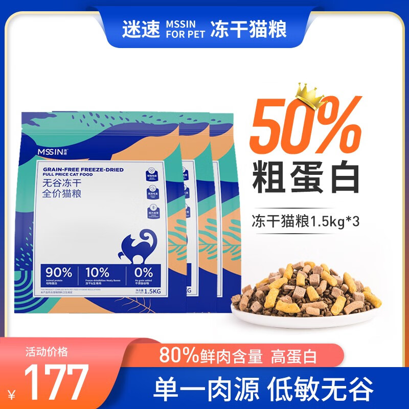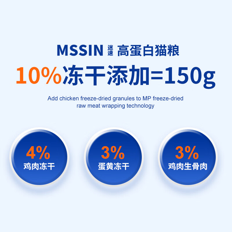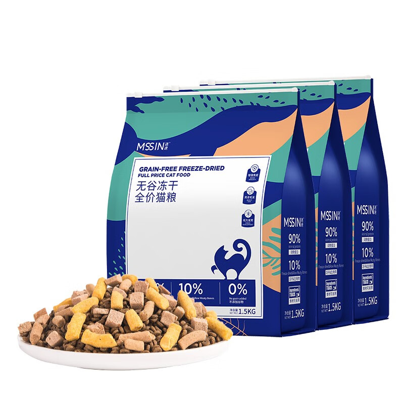 迷速MSSIN冻干猫粮3斤装1.5kg成猫幼猫宠物主粮天然无谷成年猫咪食品 高蛋白猫粮【鸡肉味】1.5kg*3袋