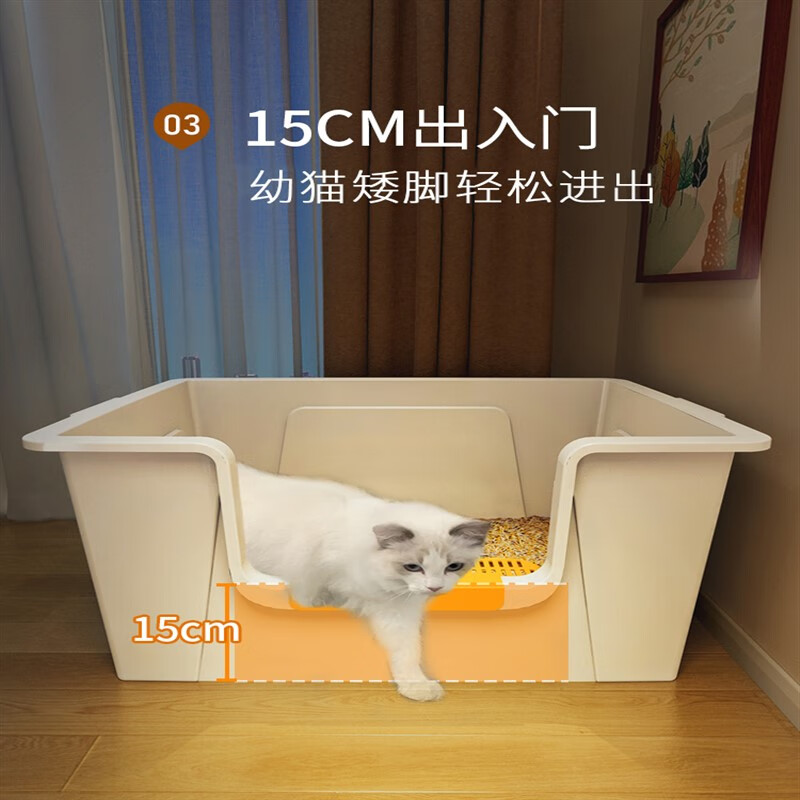蔻丝(ColesHome)超大号猫砂盆巨大猫厕所半封闭猫沙盆子开放式特大屎盆防外溅缅因 绿色