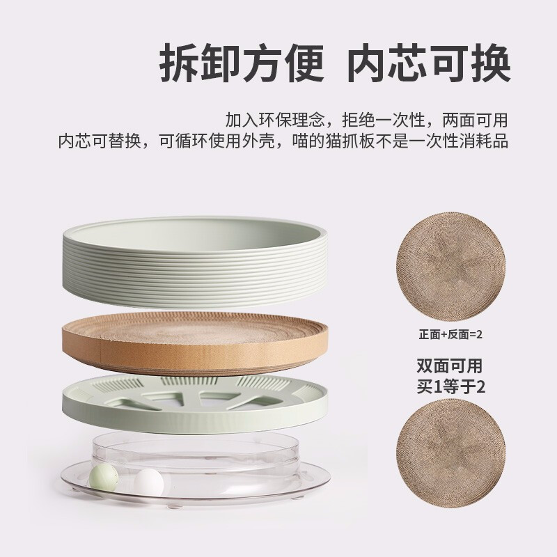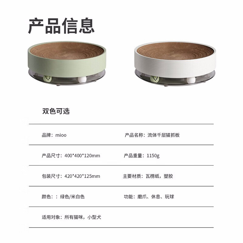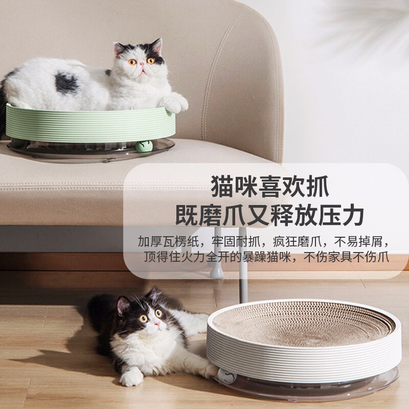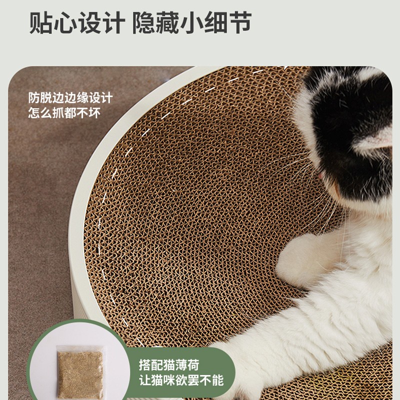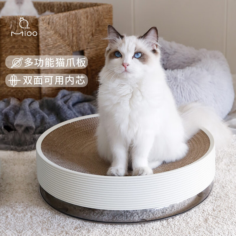 mioo猫抓板配猫薄荷猫窝猫玩具猫爪板圆形碗形大瓦楞纸大号千层猫咪用品磨爪器耐磨逗猫沙发 雅致米白