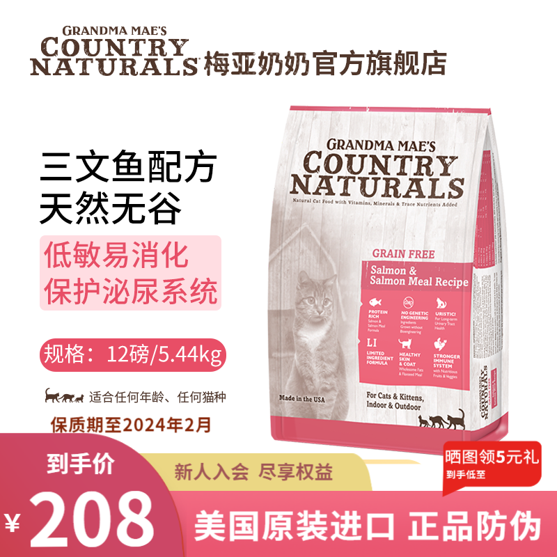 GRANDMA MAE'S COUNTRY NATURALS梅亚奶奶猫粮幼猫成猫美国进口无谷低敏三文鱼全阶段猫粮 12磅无谷三文鱼/5.44kg