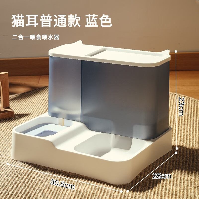 猫碗狗碗猫粮食盆双碗自动饮水斜口饭盆水碗一体保护颈椎宠物用品 猫耳款奶油蓝【多功能喂食 喂水一体猫碗】 超大容量