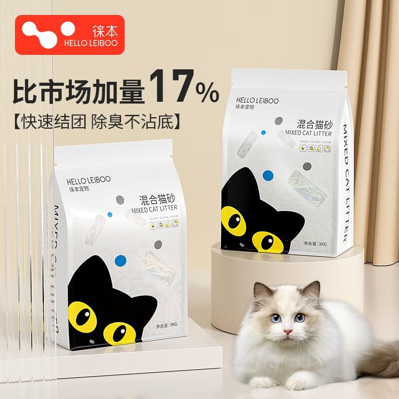 HELLOLEIBOO徕本 猫砂豆腐砂除臭无尘润土猫砂混合沙猫咪专用大袋3KG 混合砂4包24斤装【绿茶】