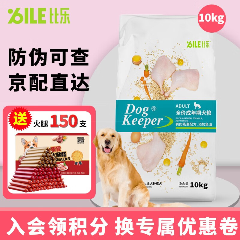 比乐原味粮(Bile!)狗粮 原味鲜系列拉布拉多金毛低敏无谷全价通用 鸭肉燕麦成犬粮10kg