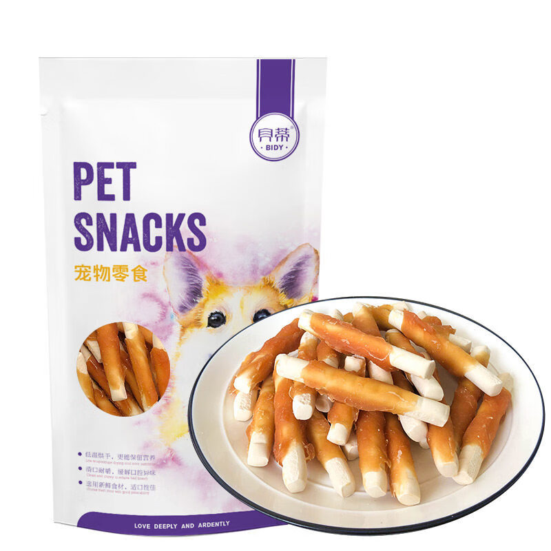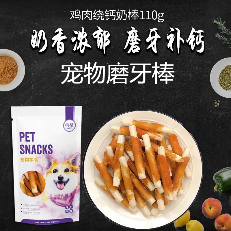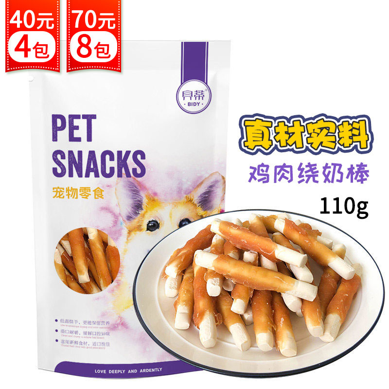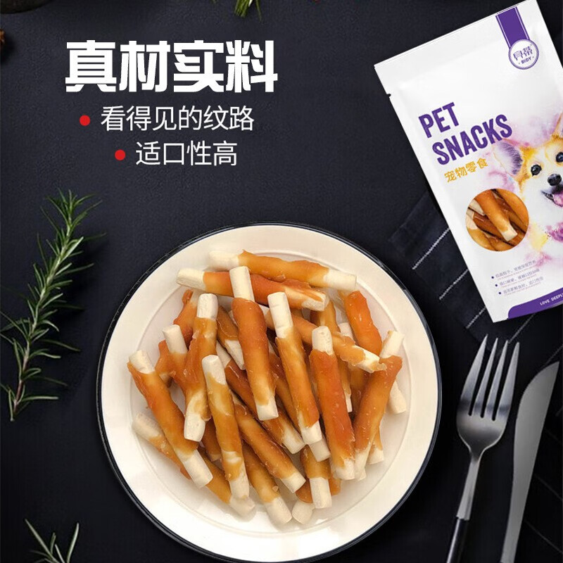 贝蒂狗狗零食宠物磨牙棒洁齿鸡胸肉干训练训犬狗零食泰迪金毛大中小型犬宠物食品 【鸡肉绕奶棒】110g