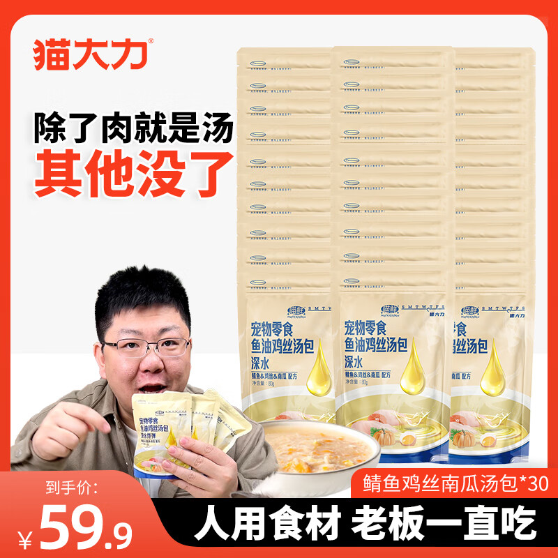 猫大力猫咪零食补水汤包猫粮猫罐头幼猫成猫增肥猫条湿粮主食猫饭 鲭鱼鸡丝南瓜汤包*30