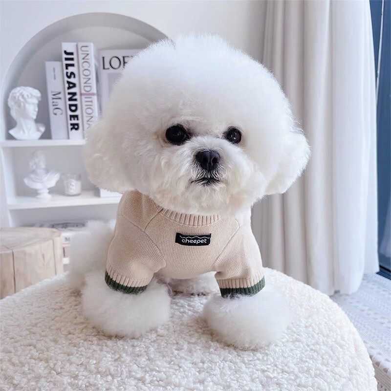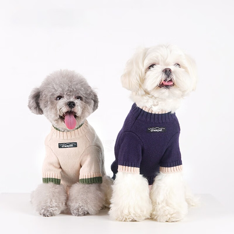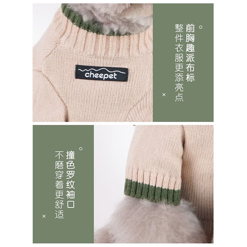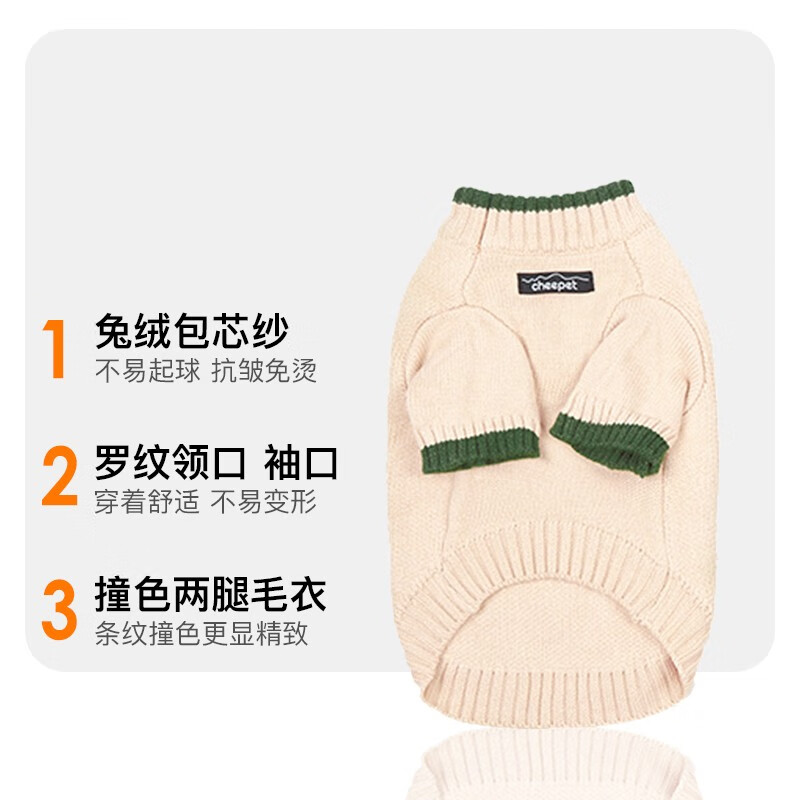 爵士狼宠物衣服狗狗撞色毛衣秋冬季加厚保暖兔绒毛衣猫咪针织衫两脚衣服 黄杏 M码(建议4-6斤)
