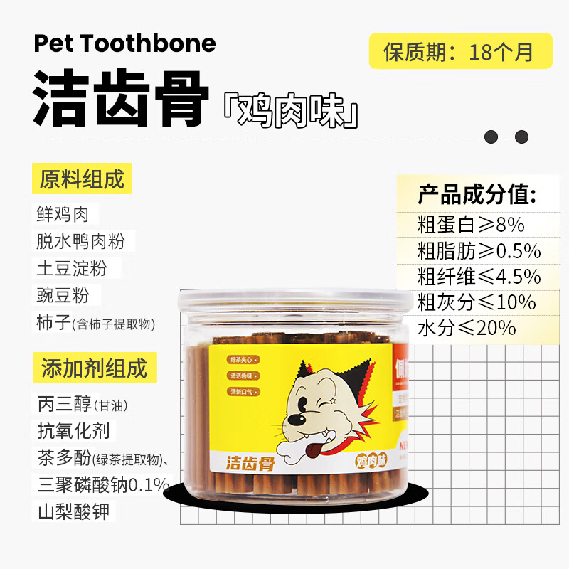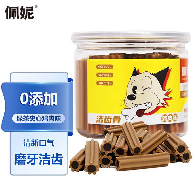 佩妮6 1清口香 狗狗零食磨牙棒泰迪成幼犬清新口气绿茶夹心鸡肉味220g/罐