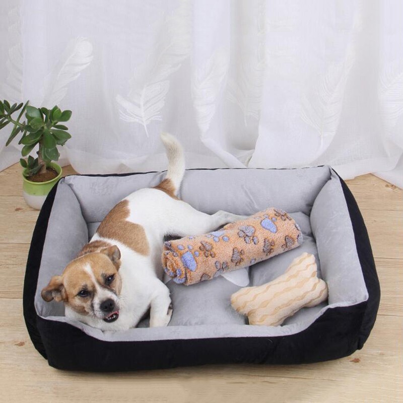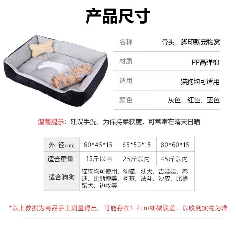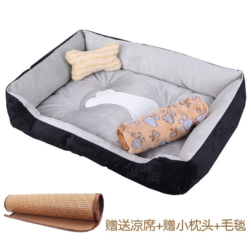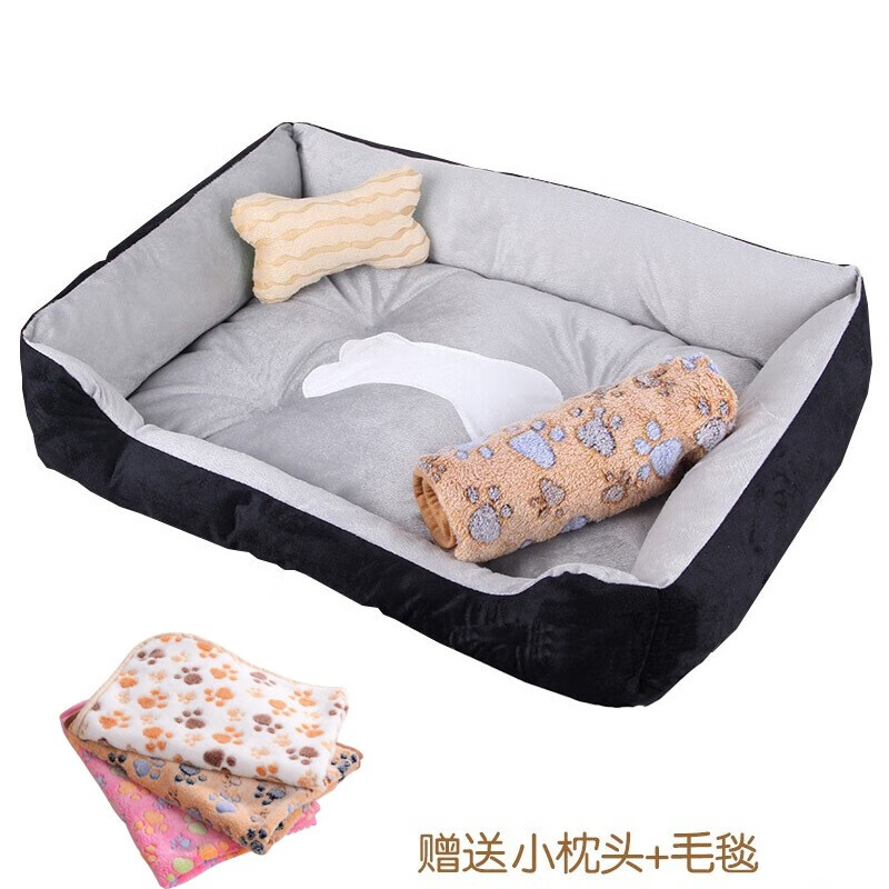 MinkSheen狗窝猫窝宠物窝夏季舒适透气四季通用保暖狗垫宠物垫泰迪狗大型犬小型犬中型犬 灰色大号25斤内【小枕头 毛毯】