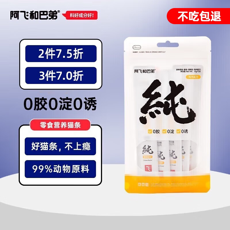 阿飞和巴弟纯条 猫条15g*5支猫咪零食营养成猫幼猫 纯肉无添加零淀粉零胶 多春鱼配方(纯条)15g*5支