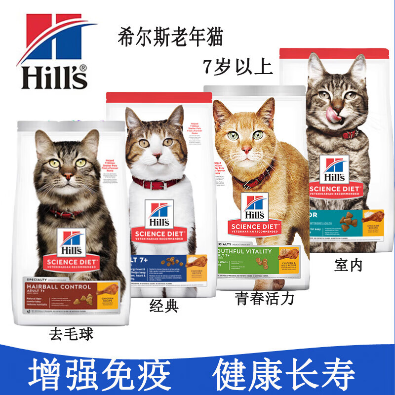 希尔斯老猫高龄猫粮老年猫7岁以上老年猫粮长寿配方 7岁去毛球7磅 0g