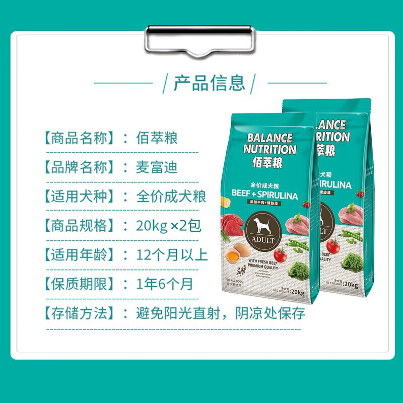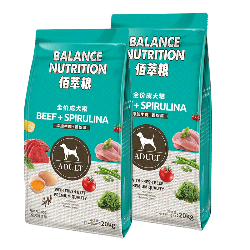 麦富迪佰萃成犬狗粮 牛肉双拼狗粮法斗金毛泰迪小型犬成犬拉布拉多犬萨摩耶通用型狗粮80斤 成犬(牛肉 螺旋藻)20kg*2包