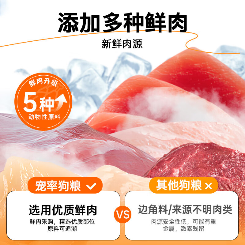 宠率狗粮鲜肉无谷金毛拉布拉多法斗柴犬马犬边牧中大型成犬幼犬粮 无谷狗粮 2.5kg (5斤 适合初次尝试)
