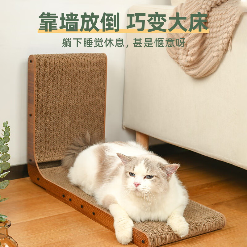 跃越(yueyue)L型猫抓板耐磨不掉屑立式猫爪板一体猫窝大号防猫抓瓦楞纸猫玩具 【猫薄荷】L型猫抓板