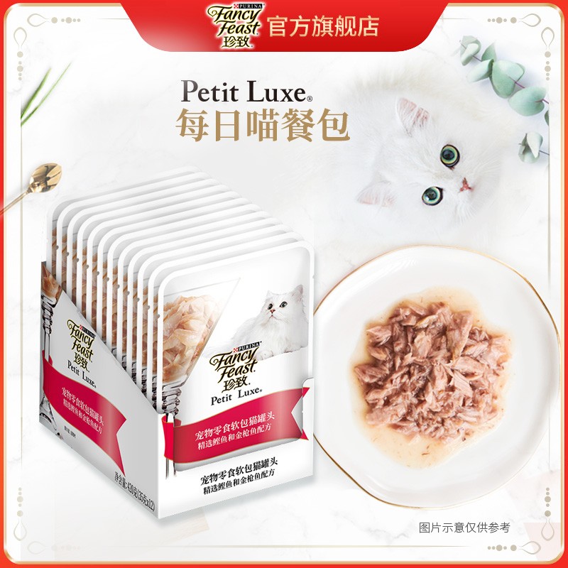 珍致 FancyFeast 每日餐包 精选鲣鱼配方整盒装 猫咪软罐头浓郁高汤猫零食 35g*12 鲣鱼 金枪鱼