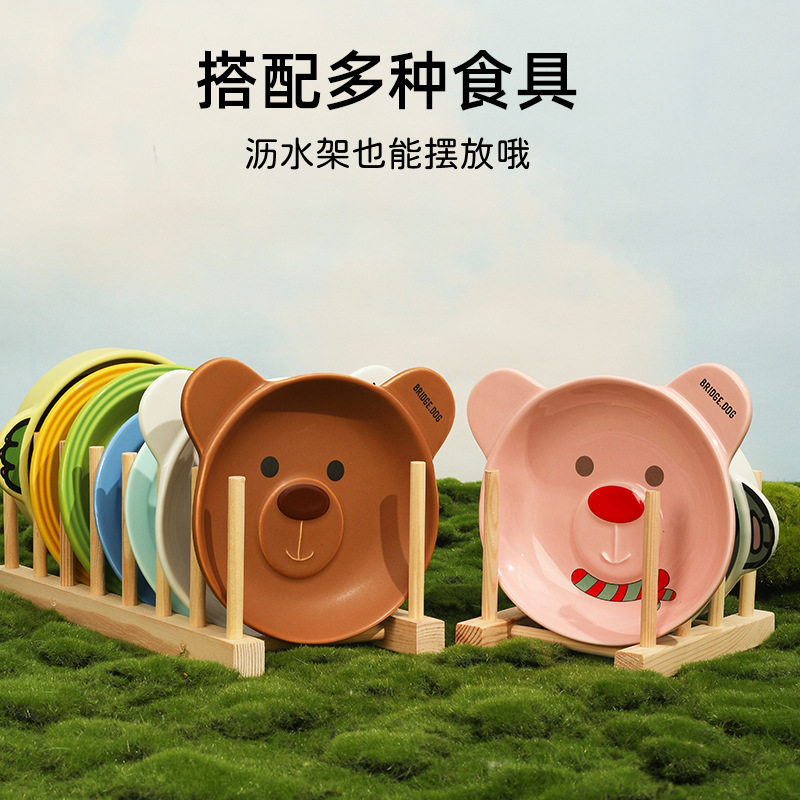 韩国Bridge 平底锅陶瓷双耳碗 防打翻不黑下巴 猫狗食盆碗架增高