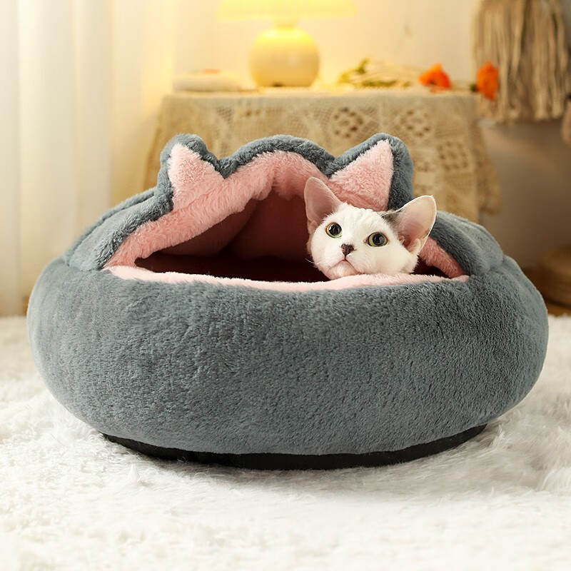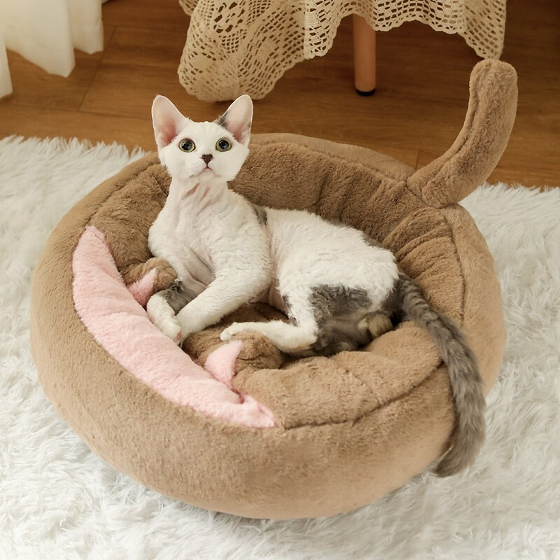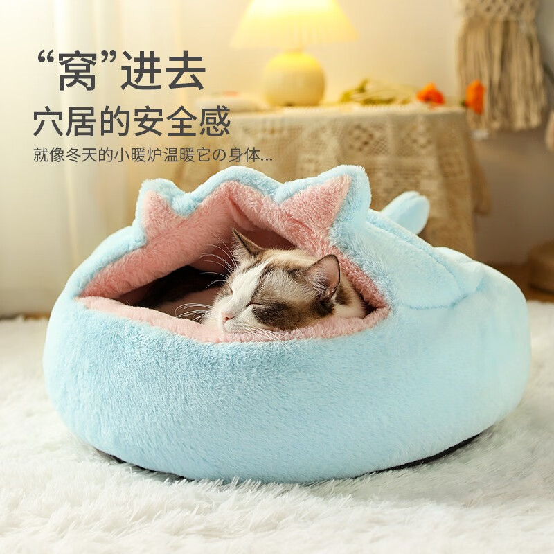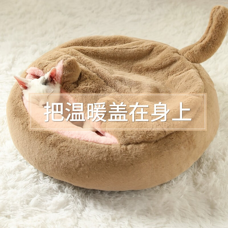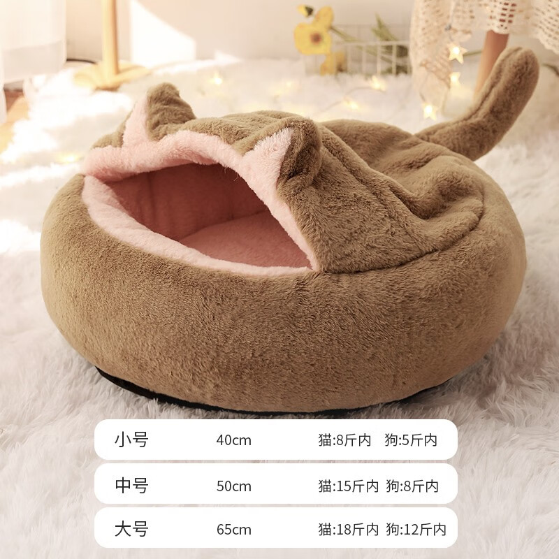 KimPets猫窝冬天狗窝封闭式宠物猫床幼猫冬季小型犬比熊泰迪保暖猫咪被子窝用品四季通用 【卡其色】龙猫被子窝 小号(直径40cm适合8斤内猫/5斤内狗)