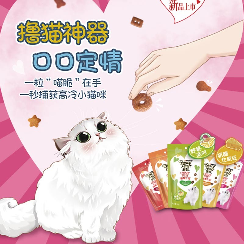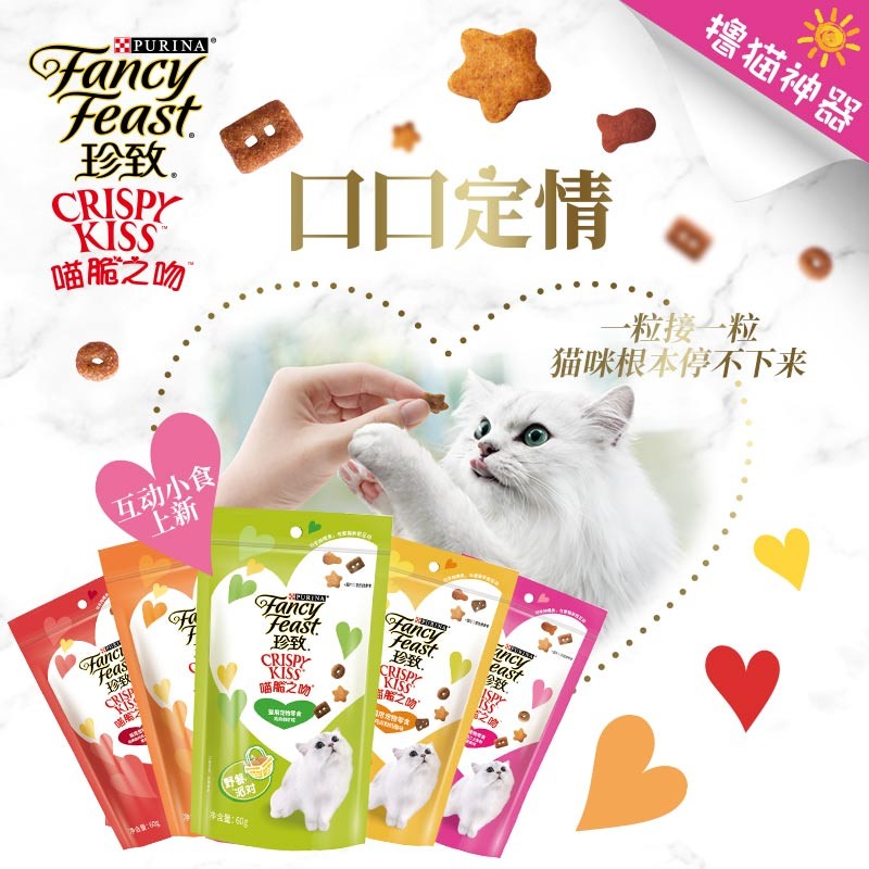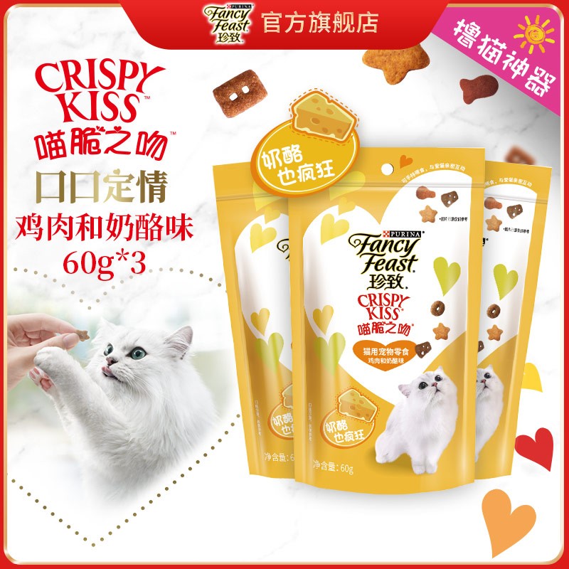 珍致(FancyFeast)猫零食 猫饼干喵脆之吻唇齿留香 (新口味)鸡肉奶酪味60g