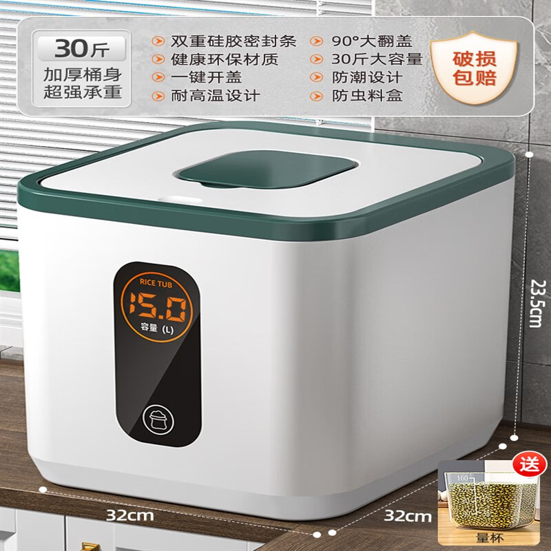 HKML 猫狗储粮罐猫粮储粮桶狗粮密封罐防潮10斤宠物猫咪粮食20斤存储 经典绿 猫狗粮18斤-大米30斤鎹