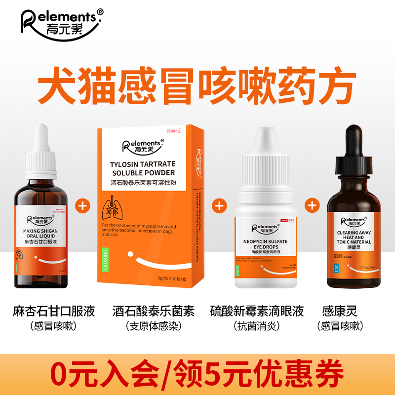 育元素狗狗泰乐菌素猫用宠物支原体衣原体感染急性肠胃炎咳嗽喷嚏鼻涕猫鼻支 感冒咳嗽药方猫用