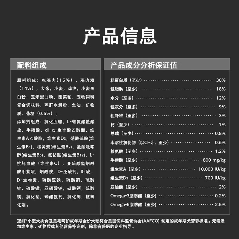 冠能(PRO PLAN)挑食及美毛呵护成年期全价犬粮 2.5kg