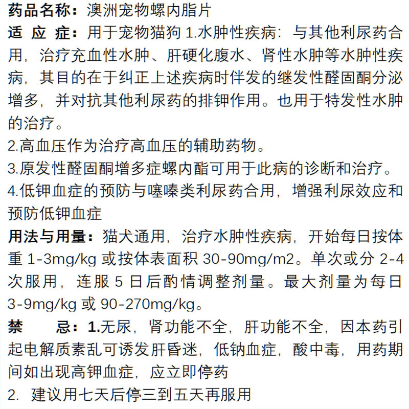 宠物犬螺内酯脂片保钾片猫咪狗狗利尿水肿腹水辅助心脏药10粒 10粒 螺内酯10粒
