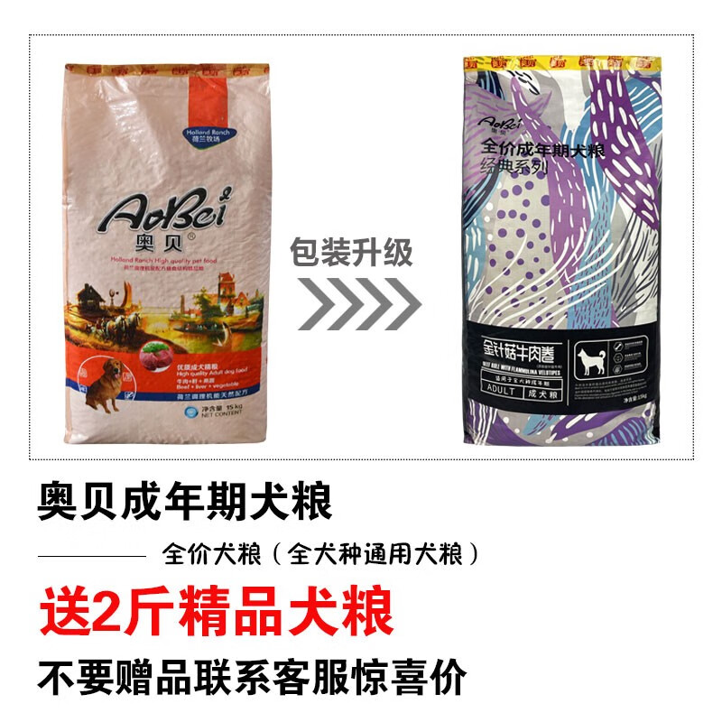 奥贝狗粮10kg成幼犬犬主粮15KG金毛泰迪比熊萨摩耶大中小通用型全价粮 成犬粮15kg 全犬种