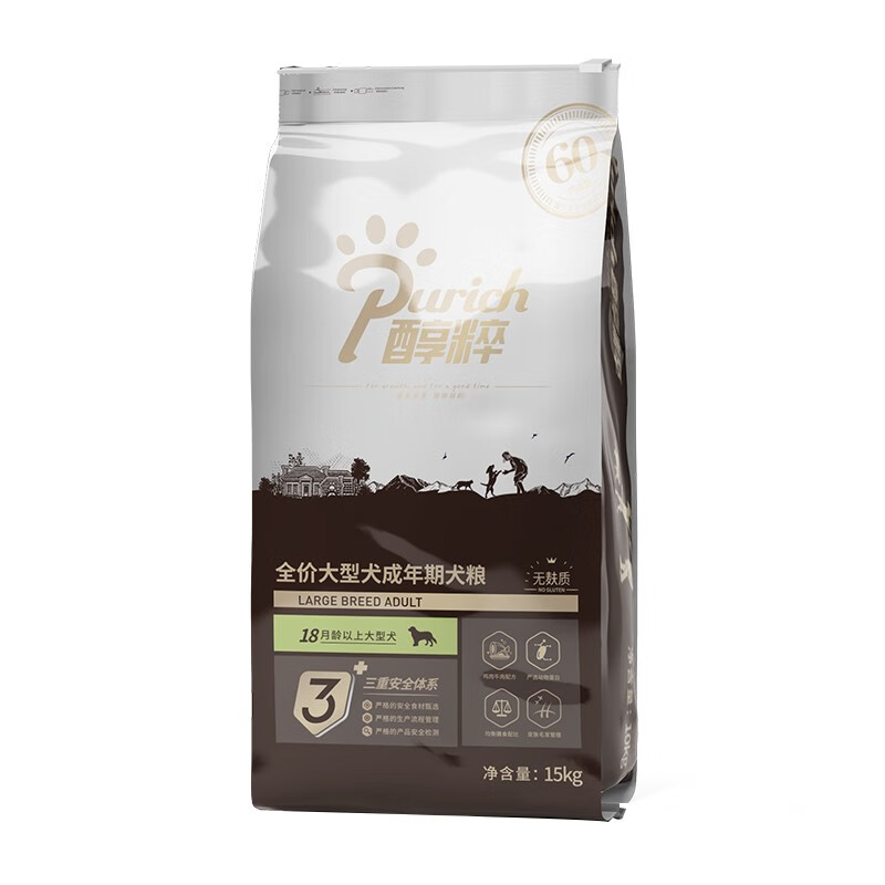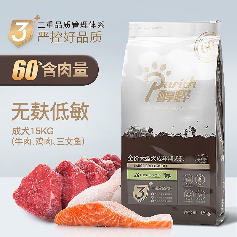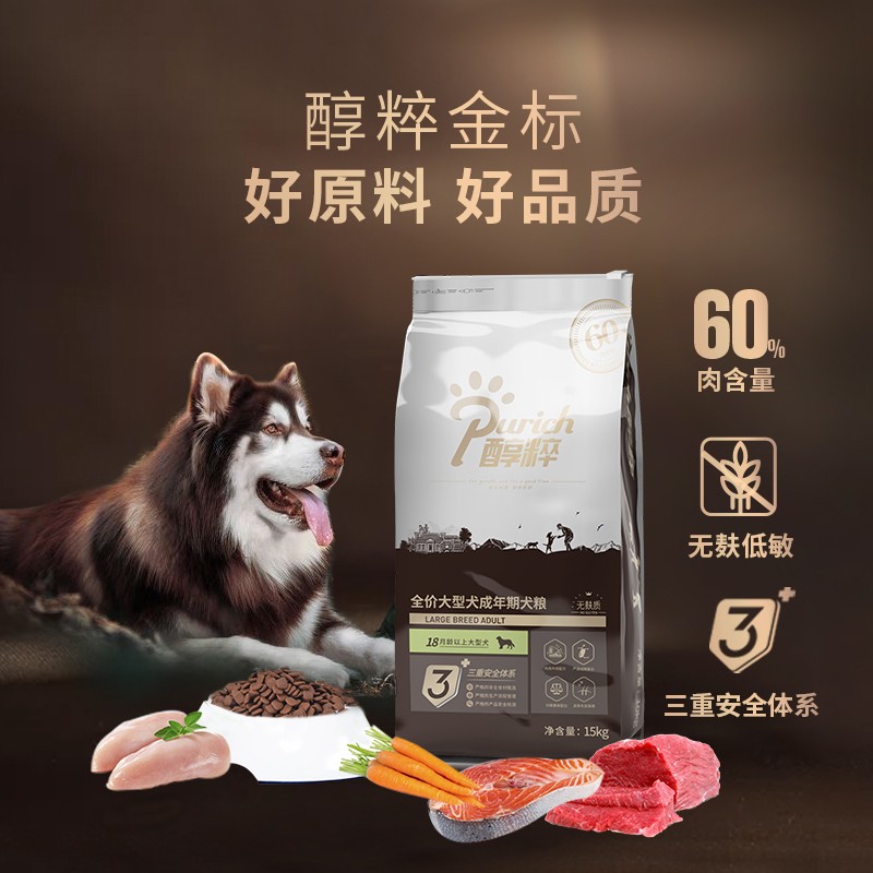 醇粹金标60肉 低温烘焙狗粮大型犬成年犬狗粮15kg金毛拉布拉多萨摩耶哈士奇