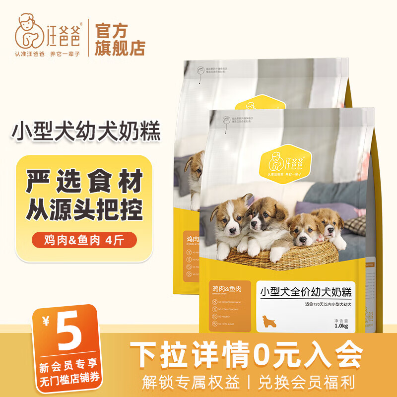 汪爸爸离乳期幼犬专用奶糕粮大小型犬泰迪比熊金毛柯基通用天然哺乳狗粮 小型犬幼犬奶糕粮4斤 1-3个月幼犬