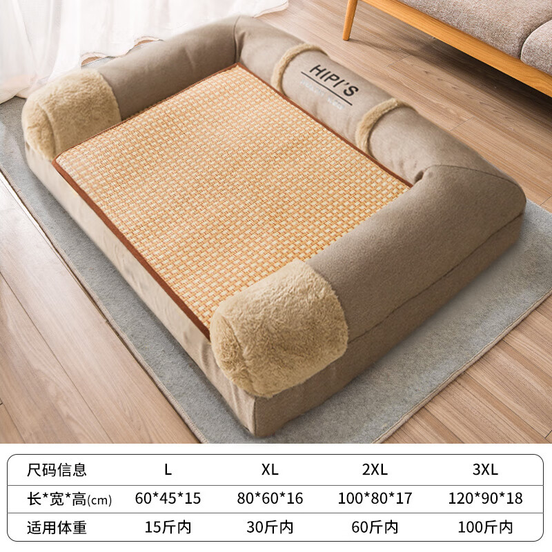 嬉皮狗狗窝四季通用秋冬保暖可拆洗大型犬金毛狗狗睡垫大狗狗垫子宠物床 卡其色三面靠(搭配凉席) 2XL(适用体重60斤内)