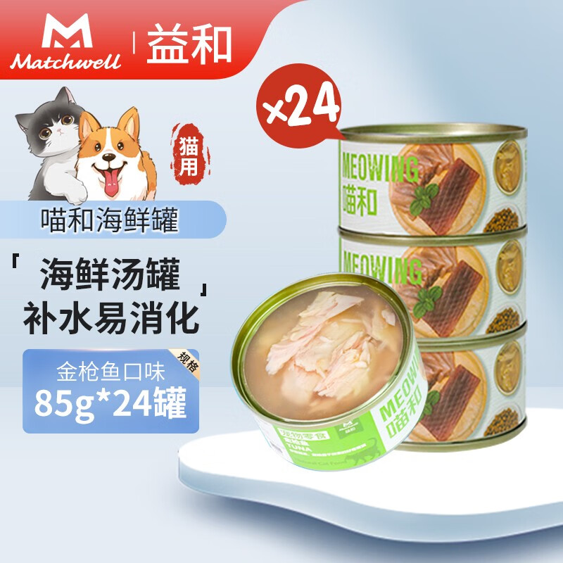 益和(MATCHWELL)益和猫罐头喵和零食汤罐营养猫粮拌饭猫咪宠物主食增肥发腮猫湿粮 【整箱24罐】纯金枪鱼口味