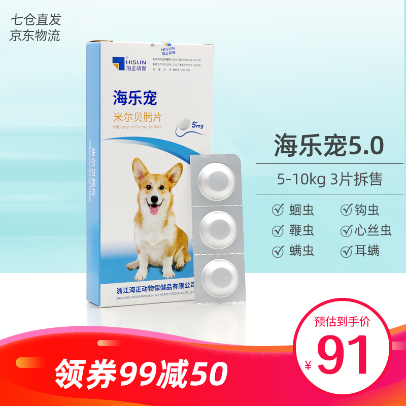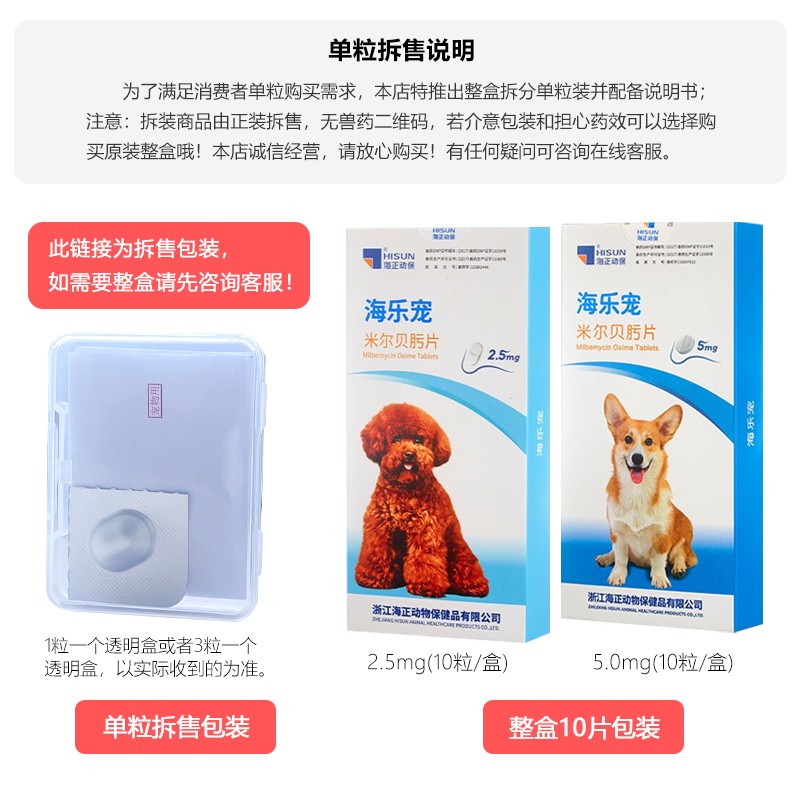 海乐宠米尔贝肟片宠物狗狗体内驱虫药内外一体小型犬泰迪金毛中大型犬用螨虫耳螨打虫片 海乐宠5.0mg(3粒拆售)
