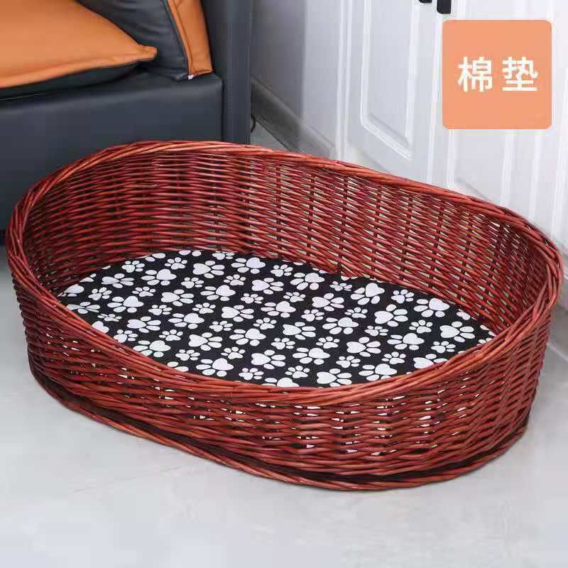 ABDT狗窝藤编夏季凉窝可拆洗狗窝狗床狗屋四季通用大中小型犬窝猫咪窝 原色 垫子 五号长50*宽38【6斤内】