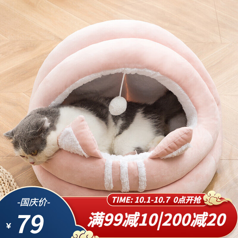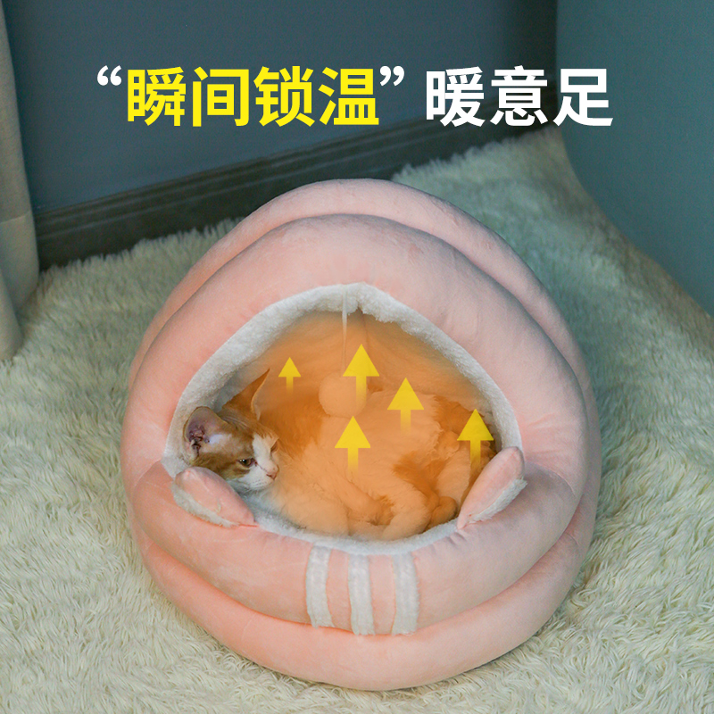 猫咪之家 蒙古包猫咪窝狗窝四季保暖猫屋封闭式猫垫子猫玩具小型犬宠物用品睡袋垫子棉可水洗 A款蒙古包猫窝 (粉色) 大号(13斤左右)