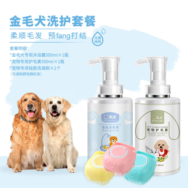 氧迪[新疆可发]金毛专用狗狗沐浴露宠物洗澡用品香波除臭抑菌止痒留香 金毛沐浴露 护毛素 洗澡刷