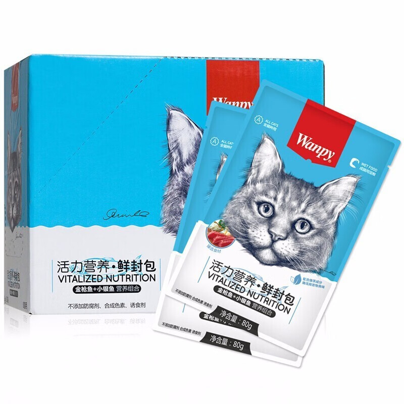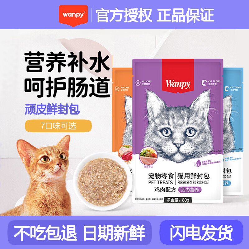 顽皮(Wanpy)猫咪鲜封包 宠物猫粮肉粒包 猫湿粮妙鲜包整盒装 鸡肉 蟹肉80g*10袋