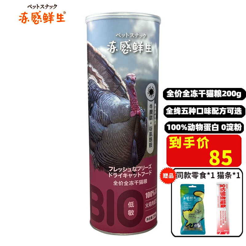 冻感鲜生黑金系列全价无谷全冻干主食代餐成猫幼猫增肥营养发腮通用猫粮 【滋补舒缓】火鸡配方200g