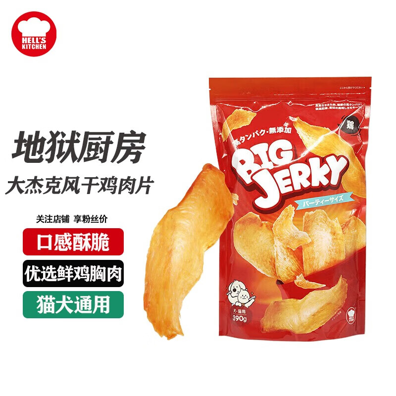地狱厨房大杰克风干鸡胸肉片 猫咪狗狗零食烘干脆片高蛋白低脂 犬猫通用 原味鸡肉片390g