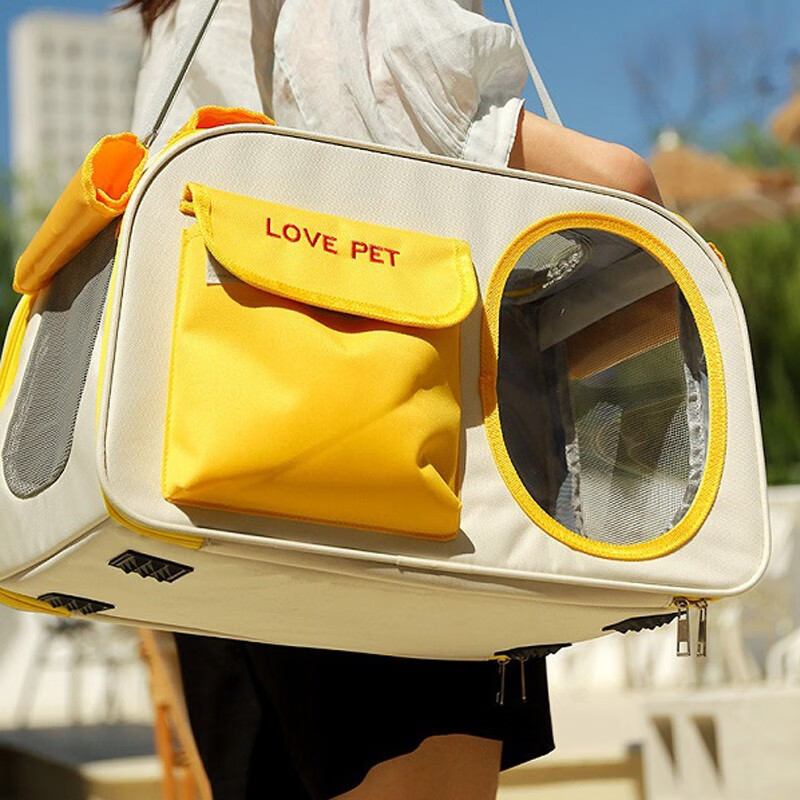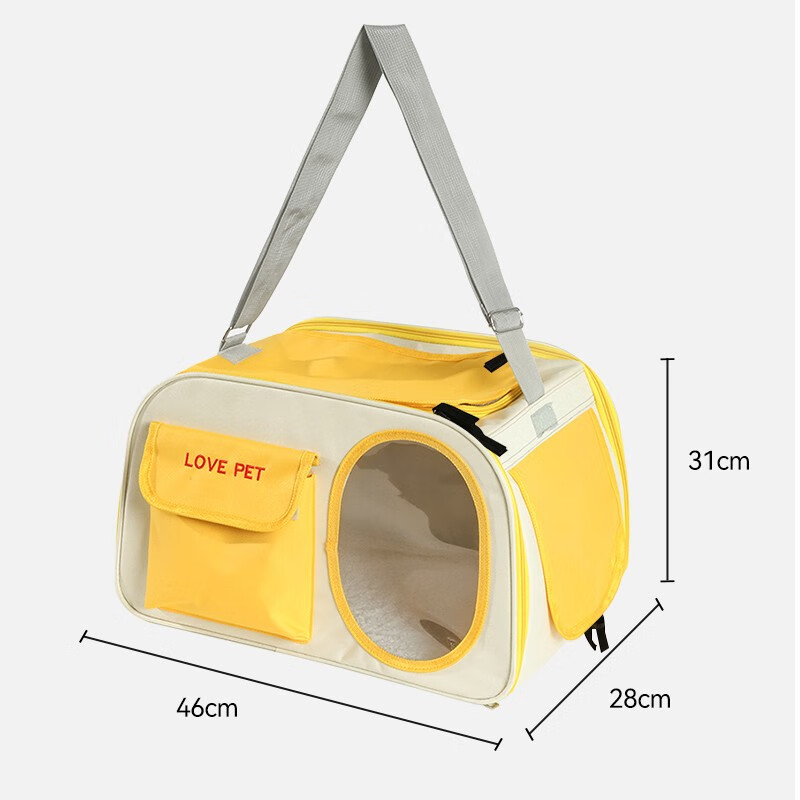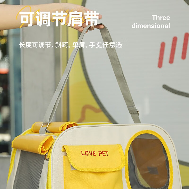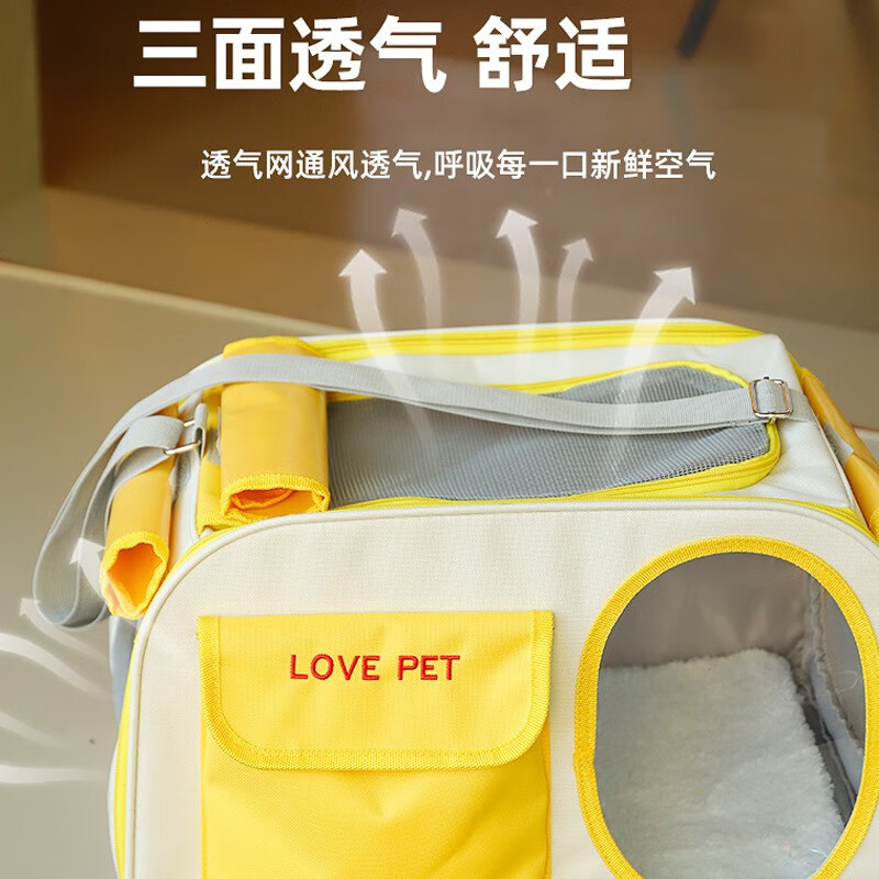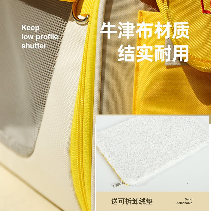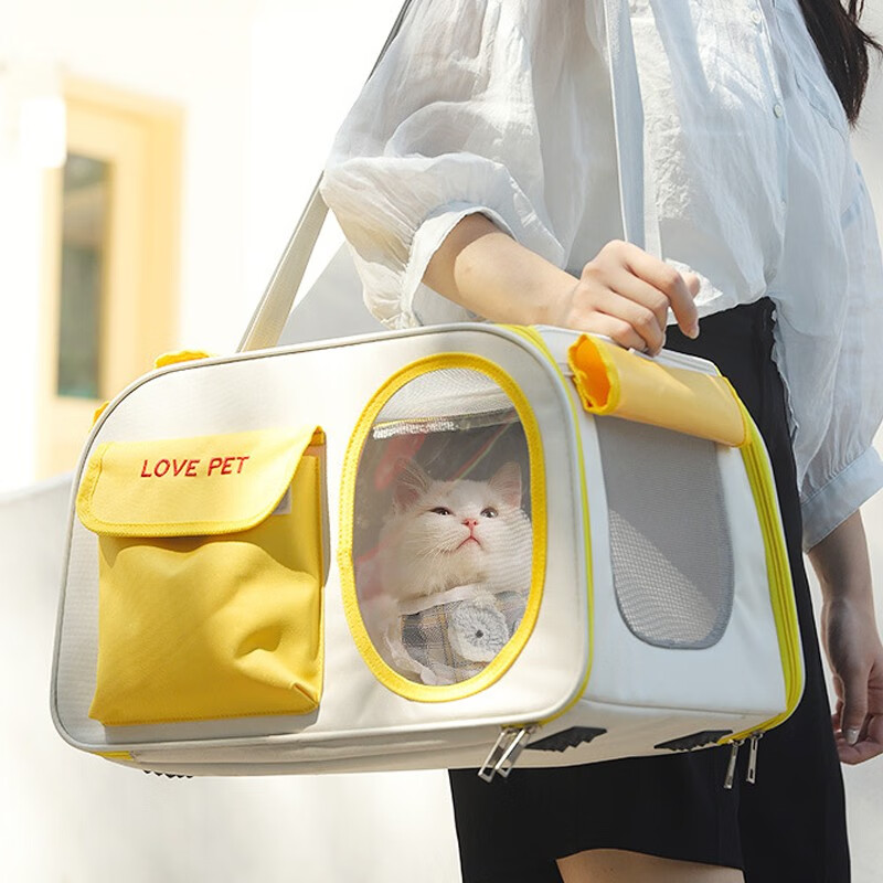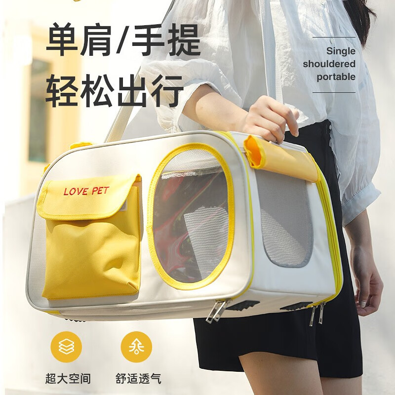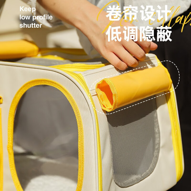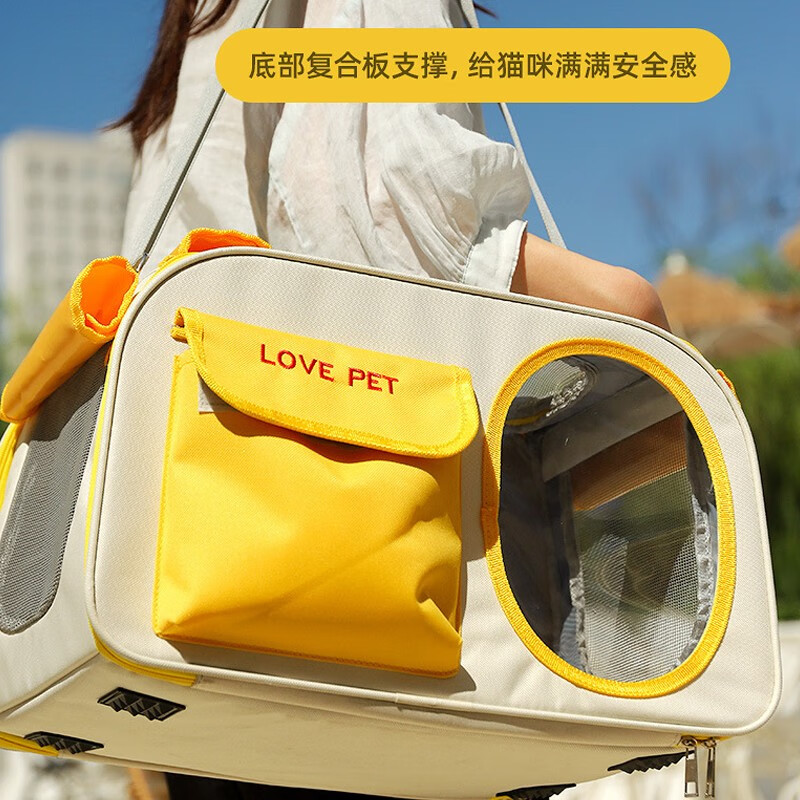 瑜品佳猫包大号帆布手提单肩狗狗外出包大容量折叠透气便携可车载宠物包 单肩猫包黄色(20斤内猫狗)