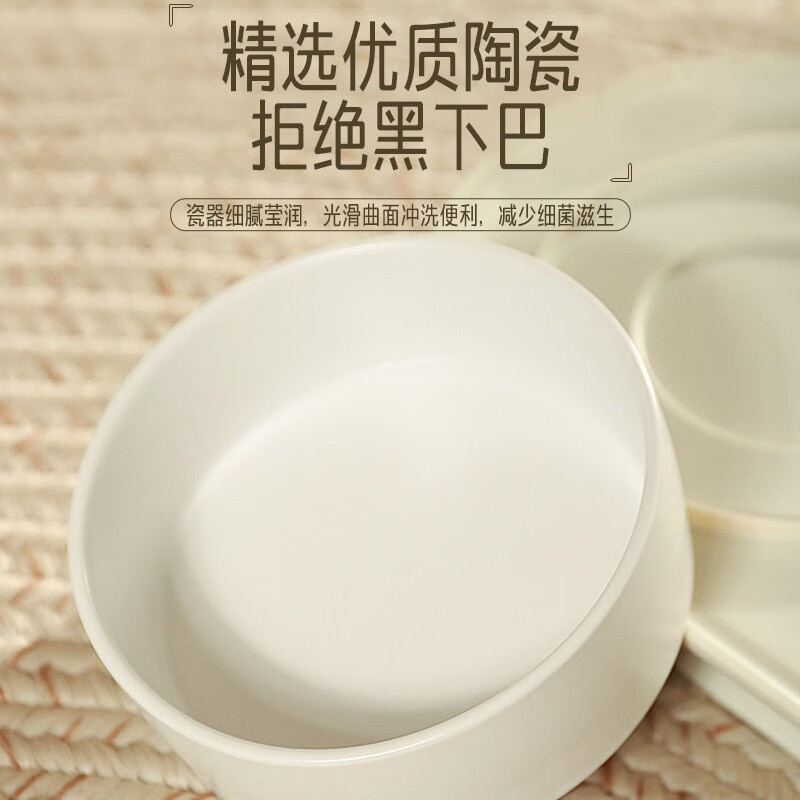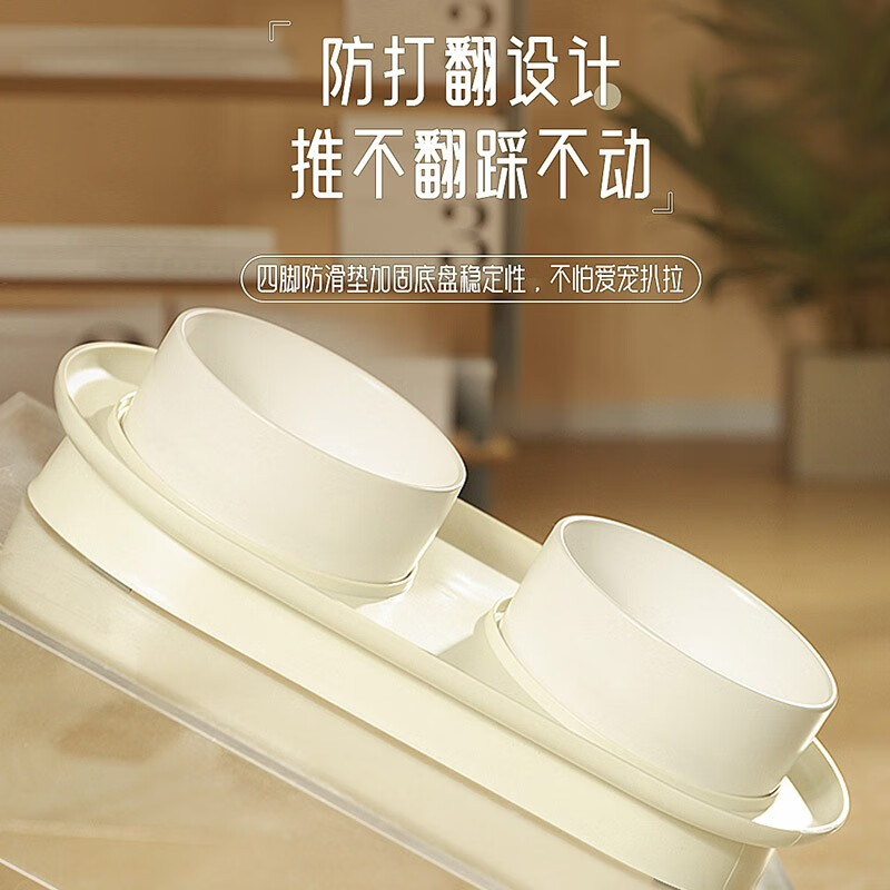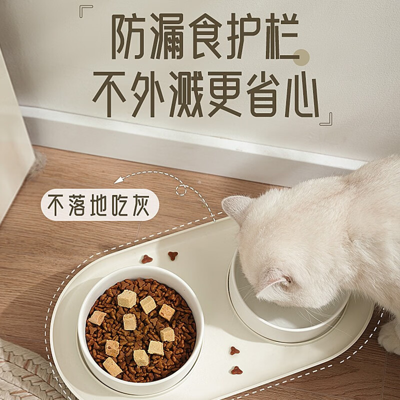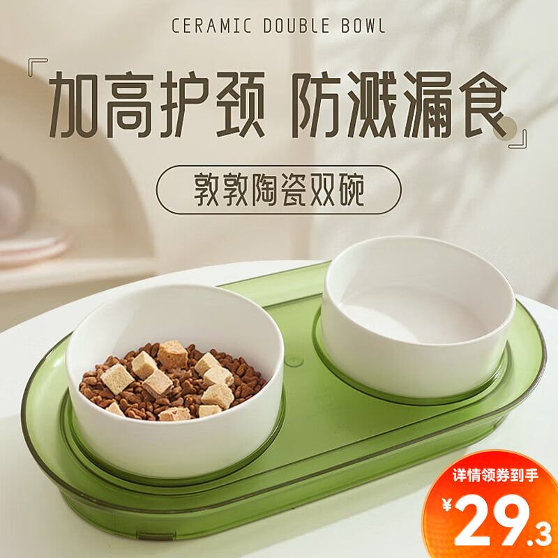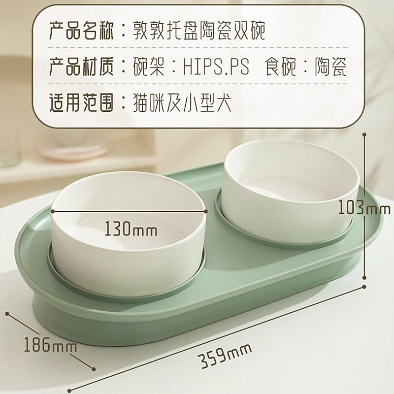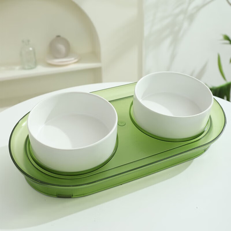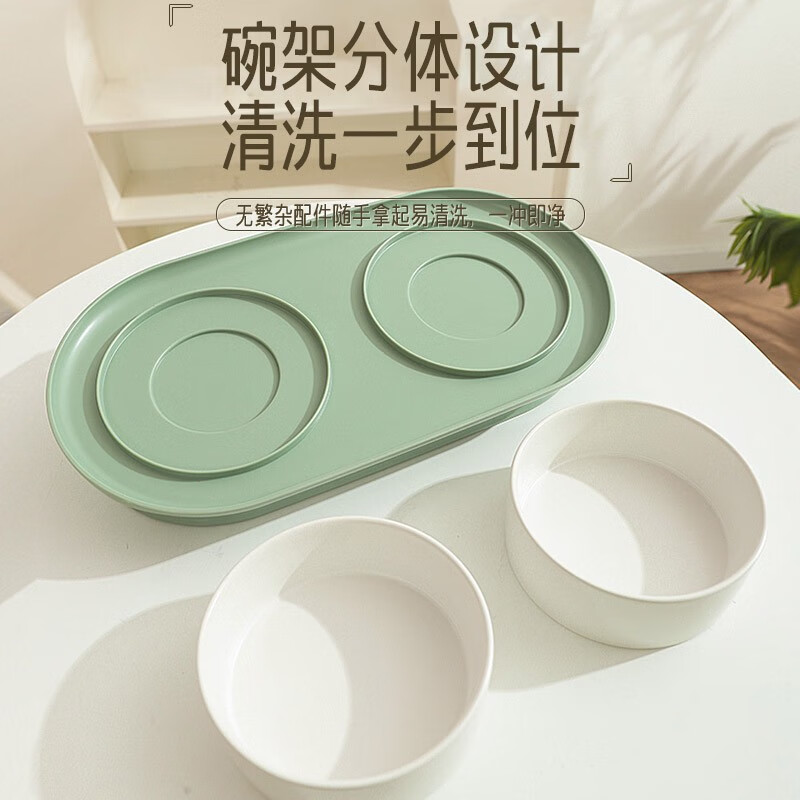 华元宠具(hoopet)猫碗陶瓷宠物碗猫盆双碗猫食盆狗盆防打翻喝水猫粮碗饭盆猫咪护颈 绿茶透【防漏食碗架 陶瓷双碗】