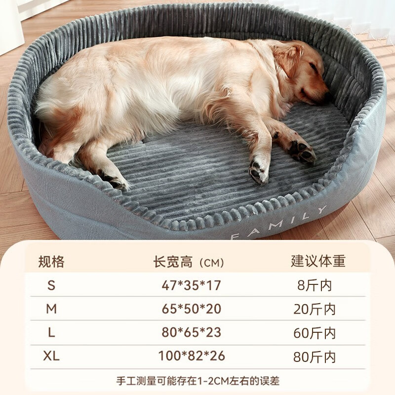 hoopet狗窝四季通用狗床大型犬睡觉可拆洗宠物狗垫子狗狗窝夏季夏天凉席 蓝灰色狗窝【耐脏单窝】 M 65*50*20(推荐30斤内)