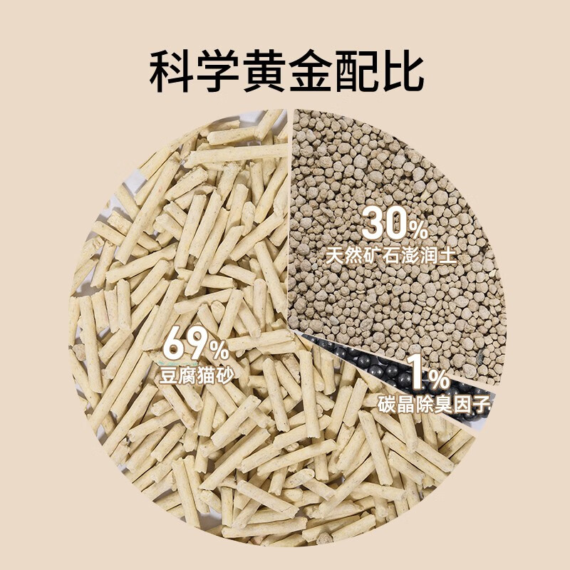HELLOLEIBOO徕本 豆腐猫砂除臭无尘膨润土混合沙猫咪用品活性炭大袋3KG 原味8包装【1.5mm 吸水结团】