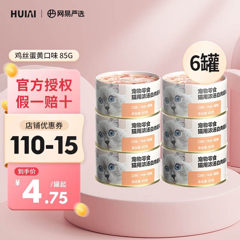 网易严选猫罐头85g 猫咪幼猫成猫罐头猫零食猫咪零食猫湿粮浓汤白肉红肉 (鸡肉 蛋黄)85g*6罐