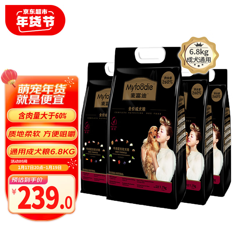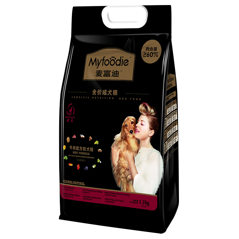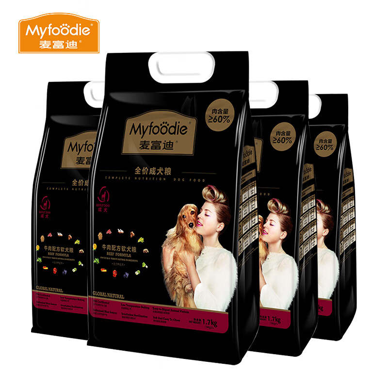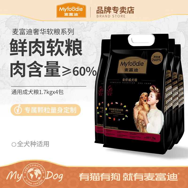 麦富迪全价软狗粮 泰迪贵宾柯基通用型鲜肉营养天然粮 成犬粮6.8kg整箱(1.7kgx4袋)