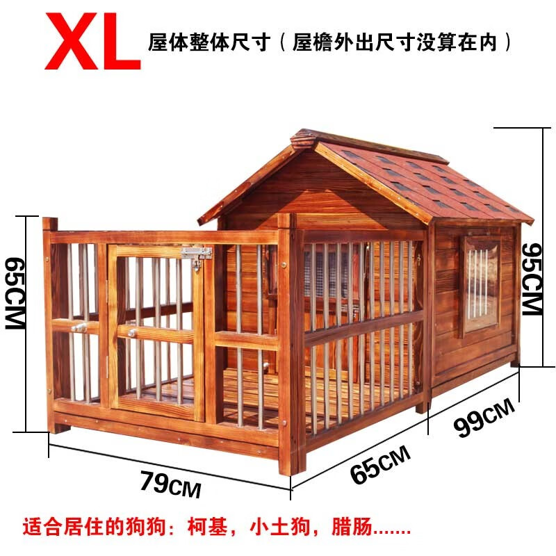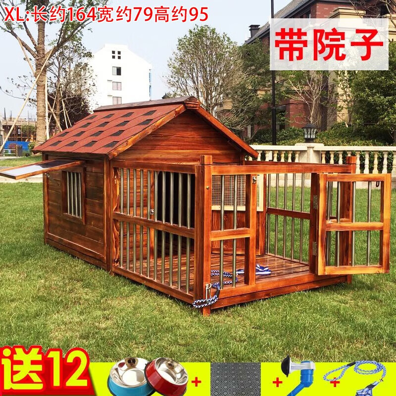 蒙奇多狗屋防水实木狗窝中型犬泰迪金毛狗房子防雨室外四季通用宠物别墅 XL带院子-长约164宽约79高约95 单边窗带纱网(不包安装) 实木狗屋(自己安装)