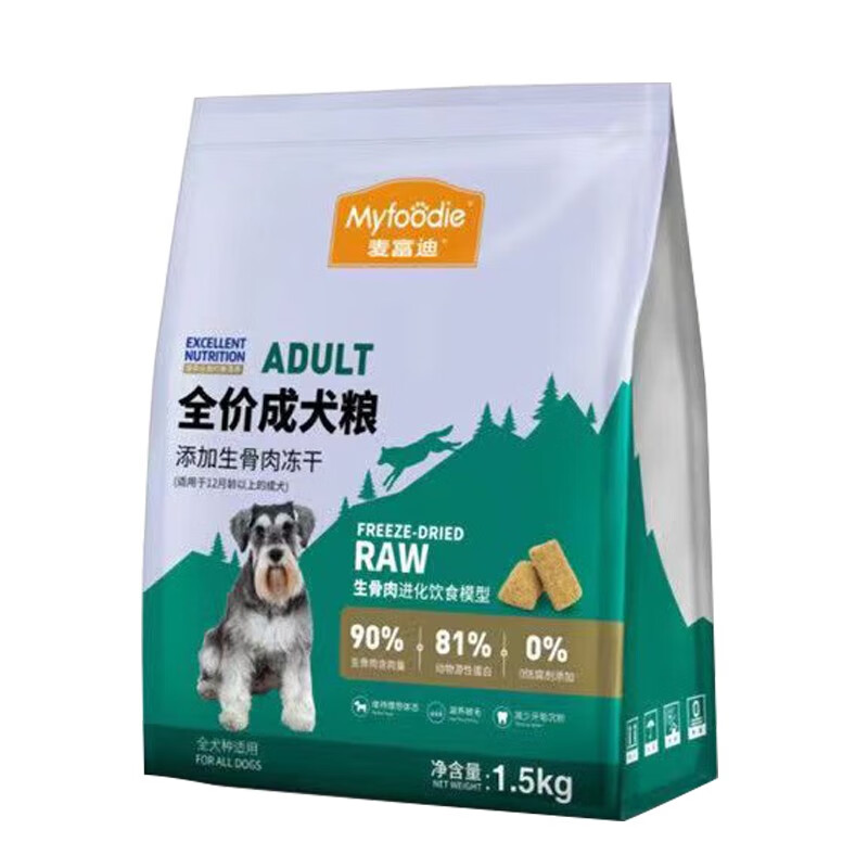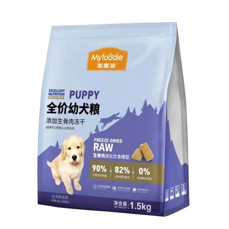 麦富迪(Myfoodie)麦富迪(MYFOODIE)狗粮大型犬小型犬通用含生骨肉冻干蛋黄双拼粮 1.5kg