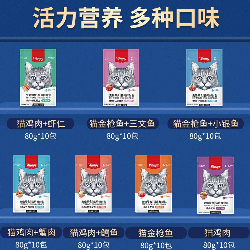 顽皮(Wanpy)鲜封包猫罐头宠物猫零食成幼猫增肥发腮营养猫湿粮包条 口味混搭--活力型 10.包