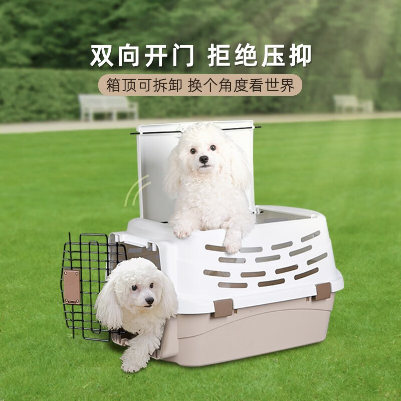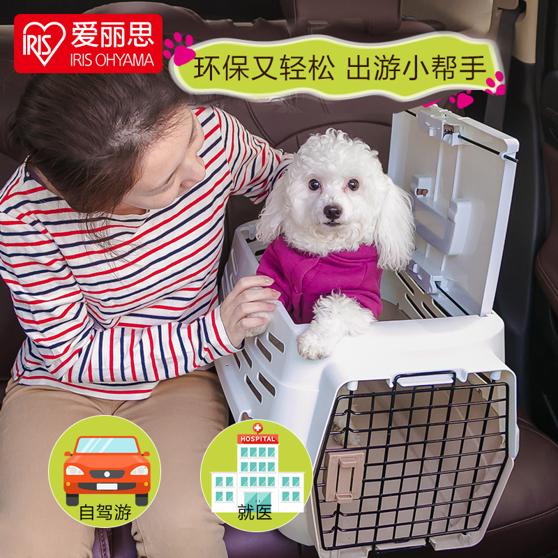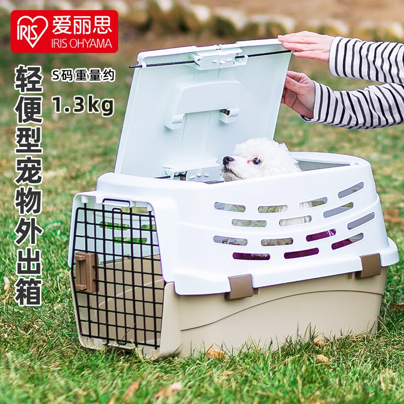 IRIS爱丽思宠物航空箱车载猫包太空舱猫咪外出用品狗航空箱托运箱外出便携狗笼子 白茶色(48.5*19.5*25cm)适合5kg内
