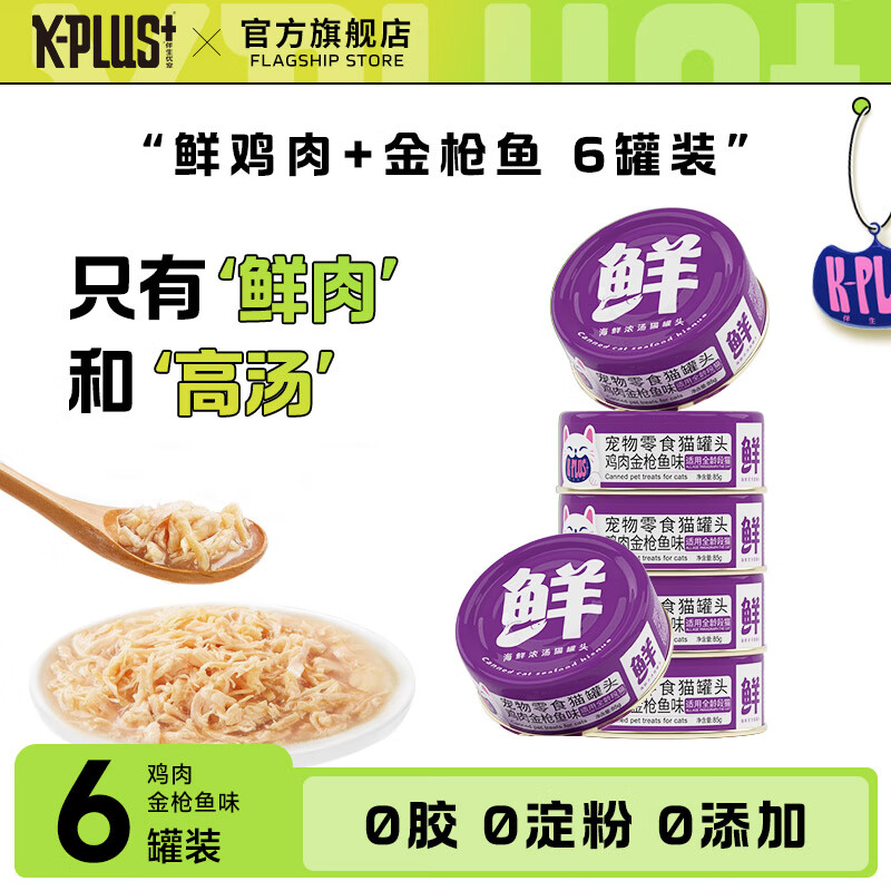 K-PLUS 猫罐头主食湿粮罐头猫咪零食 鲜肉浓汤补水鸡肉整箱 金枪鱼 鸡肉味6罐