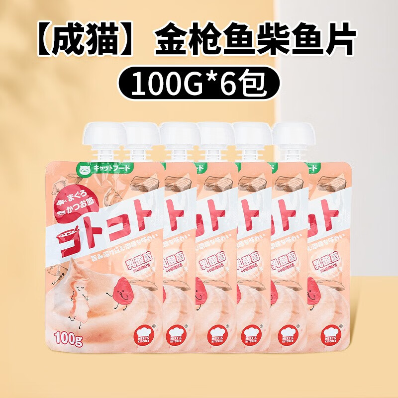 华元宠具(hoopet)地狱厨房猫零食咕噜酱金枪鱼鸡肉泥幼猫成猫增肥猫条湿粮 【成猫】金枪鱼柴鱼片-100g*6包
