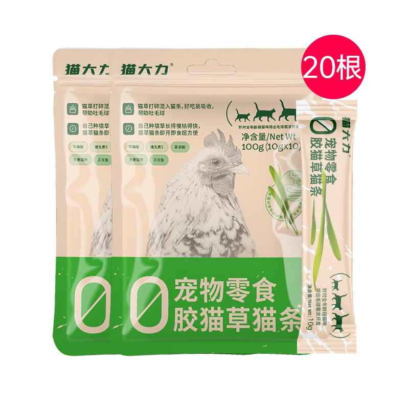 猫大力猫咪零食猫草猫条成幼猫补水猫条营养增肥小猫罐头妙鲜湿粮 猫草猫条*20